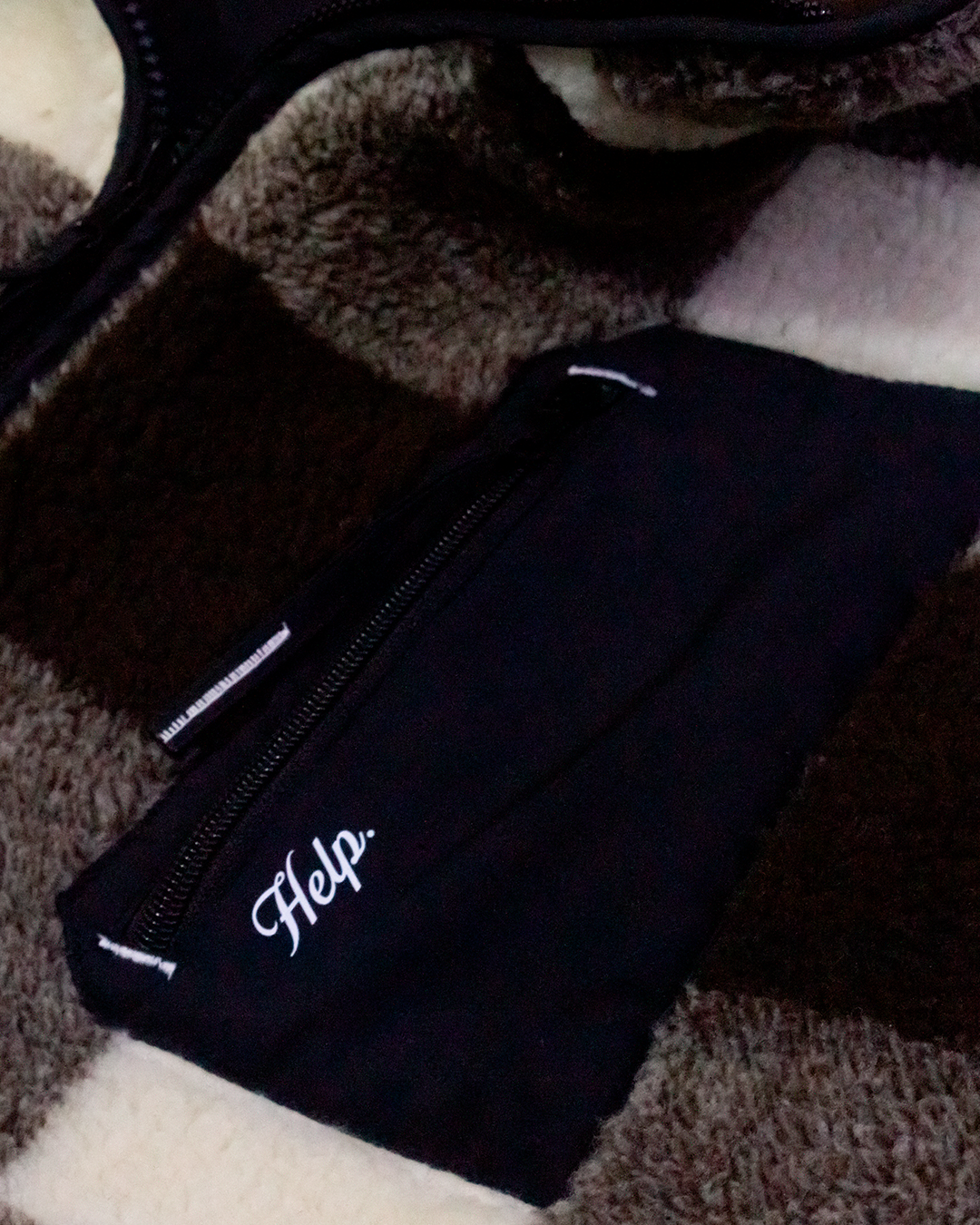 Bolsillo en el pecho con logo estampado HELP®, sello de estilo y autenticidad.