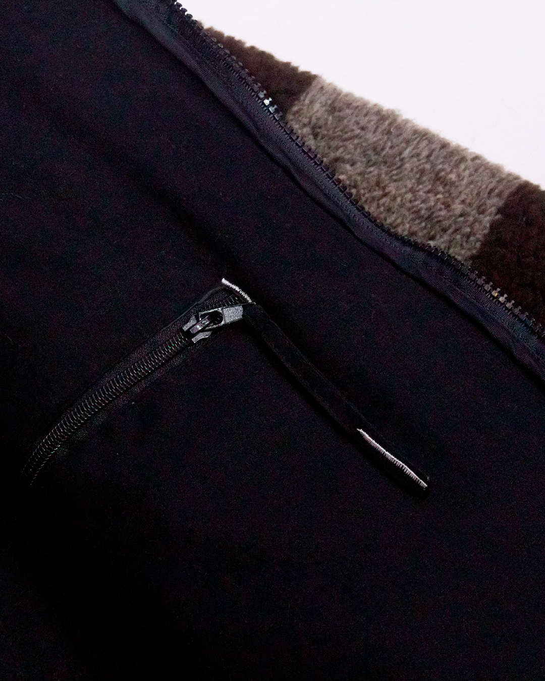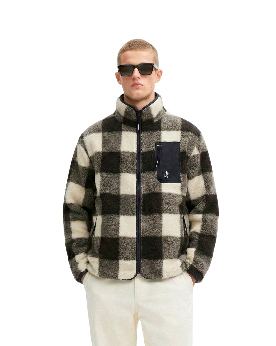 Una chaqueta Sherpa diseñada para quienes buscan algo diferente. Su textura cálida y el patrón tipo sierra se combinan con detalles técnicos en nylon, como el bolsillo frontal con cremallera, aportando contraste y funcionalidad.