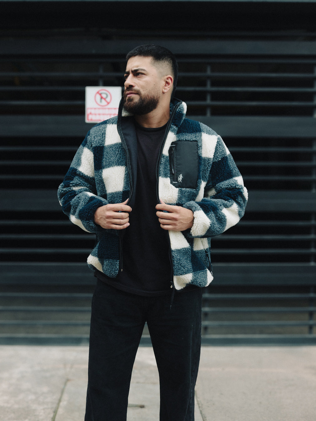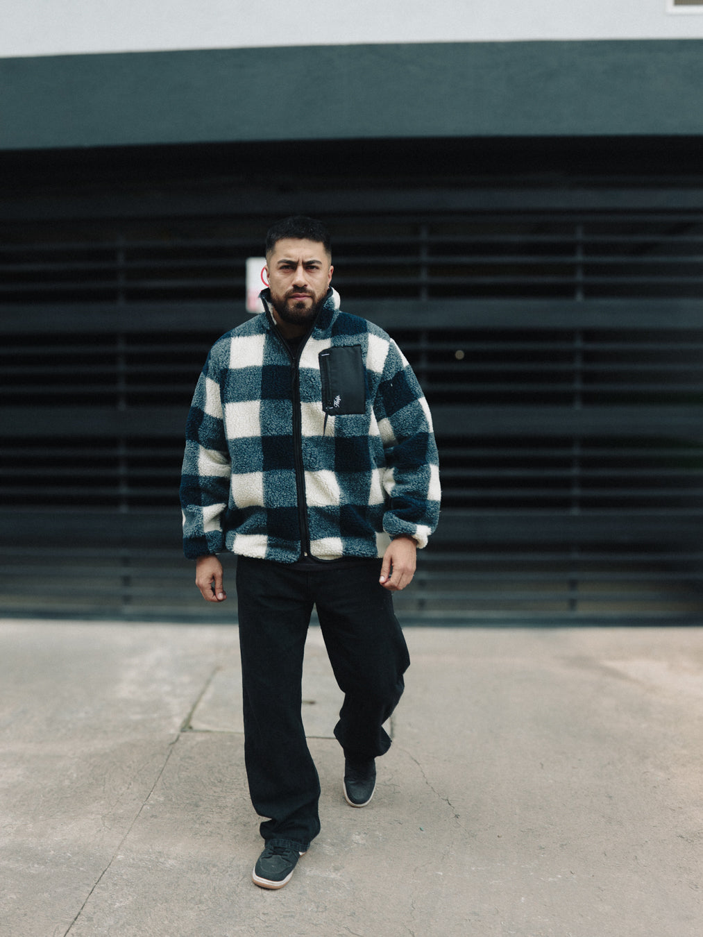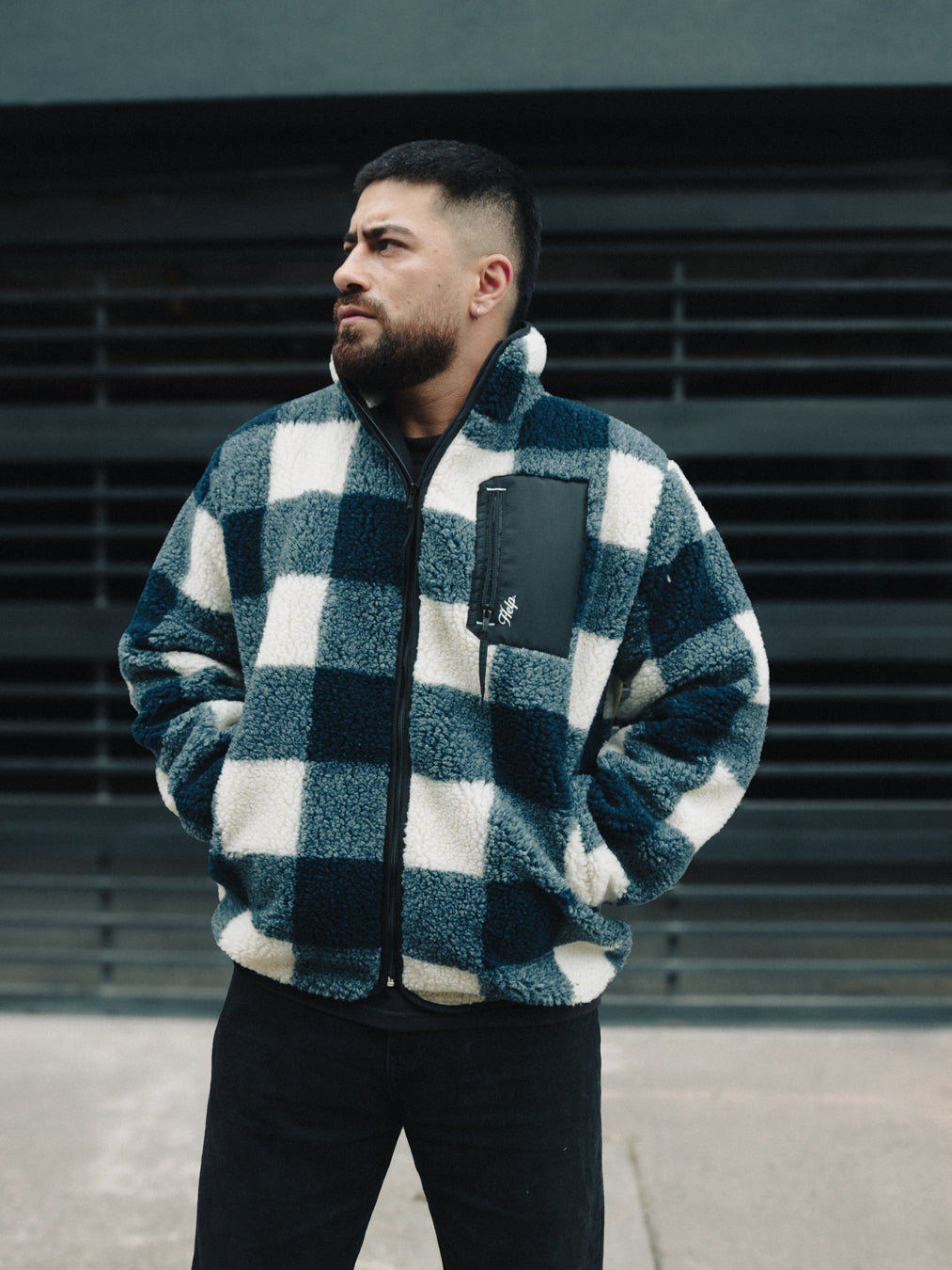 Una chaqueta Sherpa diseñada para quienes buscan algo diferente. Su textura cálida y el patrón tipo sierra se combinan con detalles técnicos en nylon, como el bolsillo frontal con cremallera, aportando contraste y funcionalidad.
