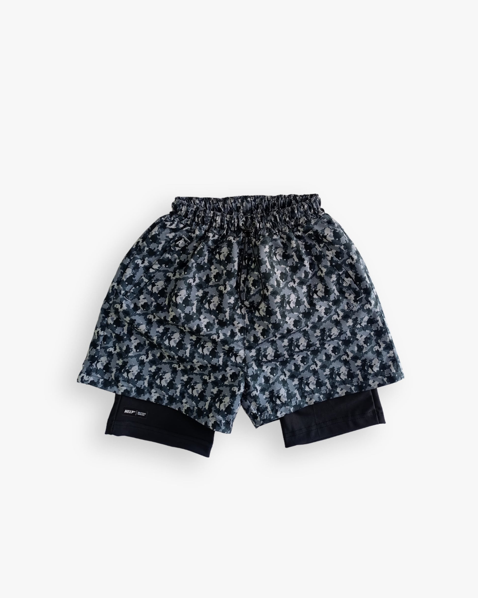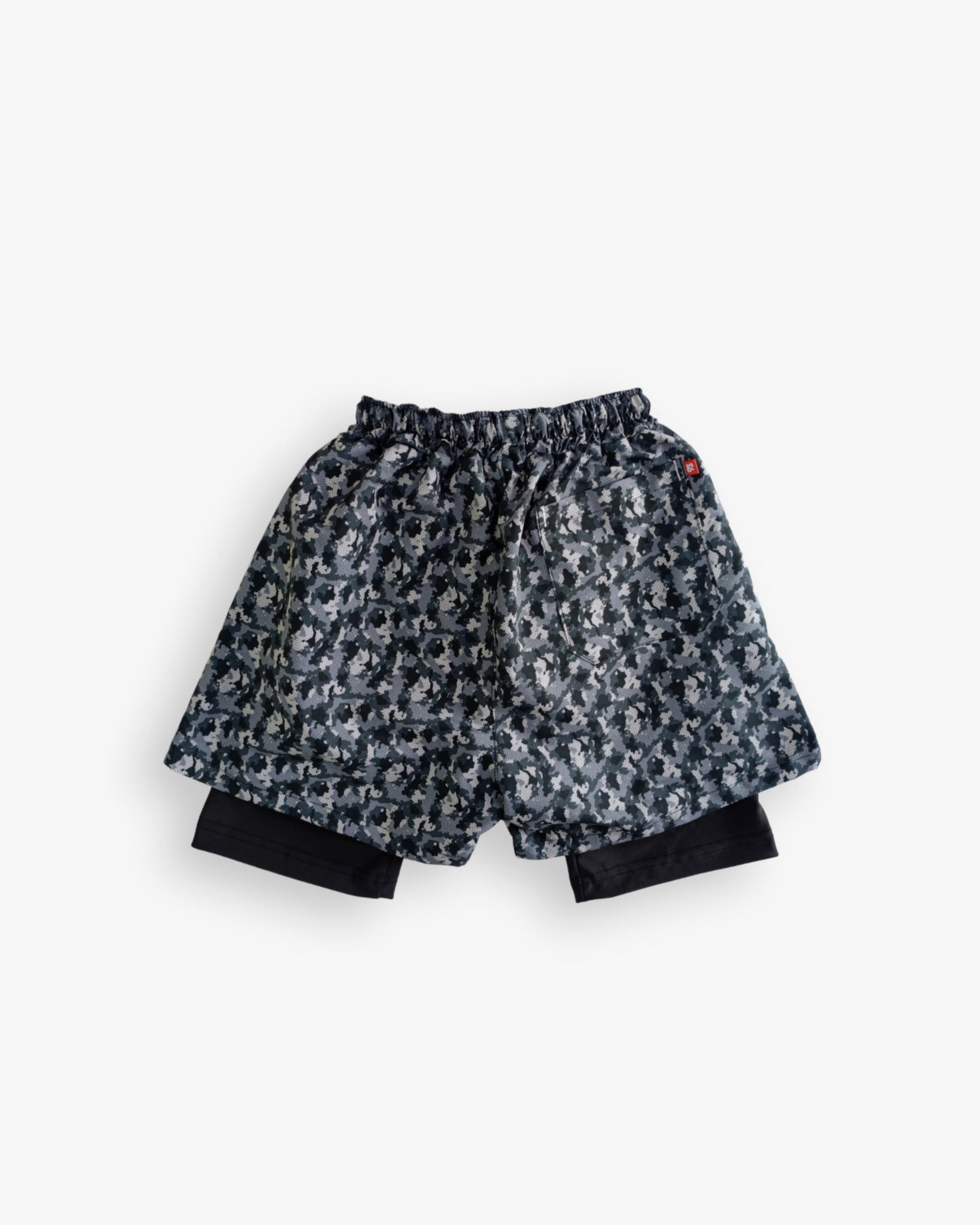 Pantaloneta Deportiva Running HELP ( Gris Camuflado ) 2 en 1
